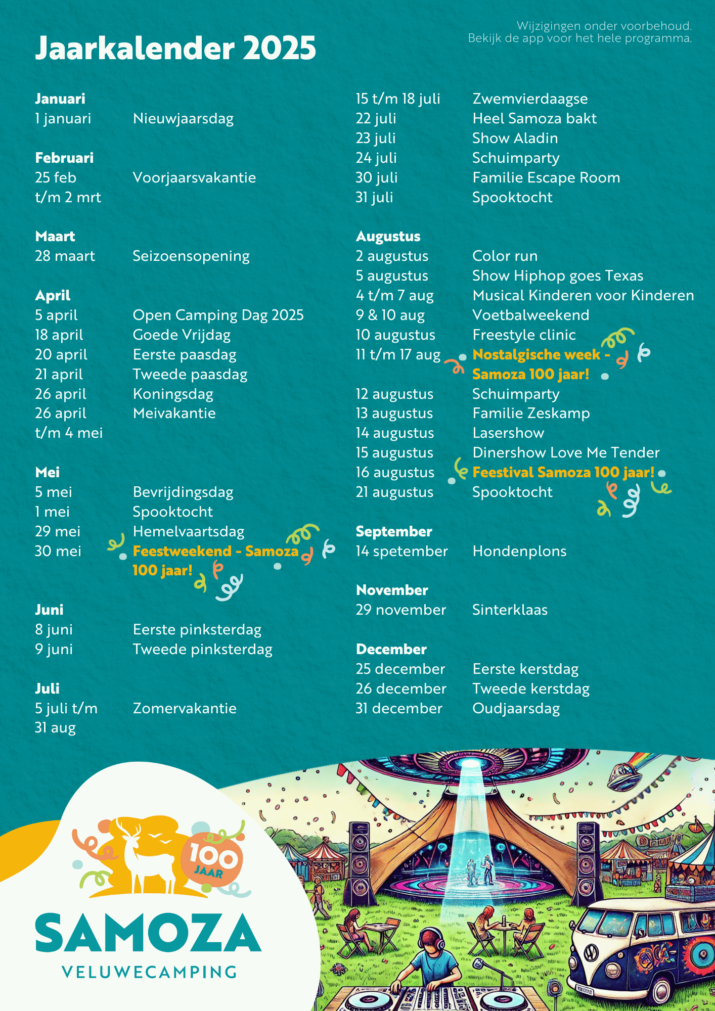 Op 31 mei 2025 bestaat Camping Samoza 100 jaar! Een eeuw vol natuur, avontuur en onvergetelijke vakanties op de Veluwe. Wat begon als een eenvoudige camping in de bossen, is uitgegroeid tot een geliefde vakantiebestemming voor gezinnen, natuurliefhebbers en hondenbezitters. Dit jubileumjaar staat in het teken van herinneringen, festiviteiten en een blik op de toekomst.